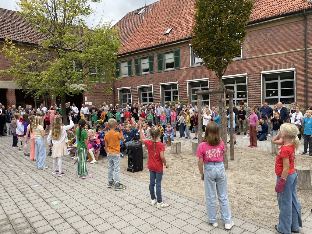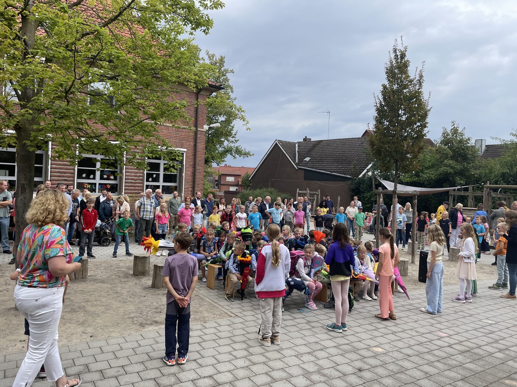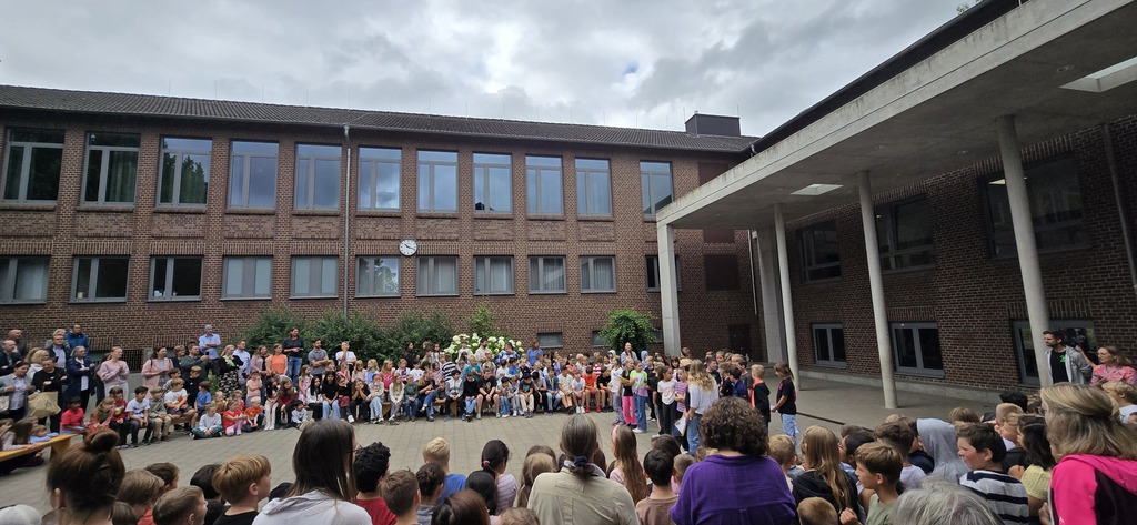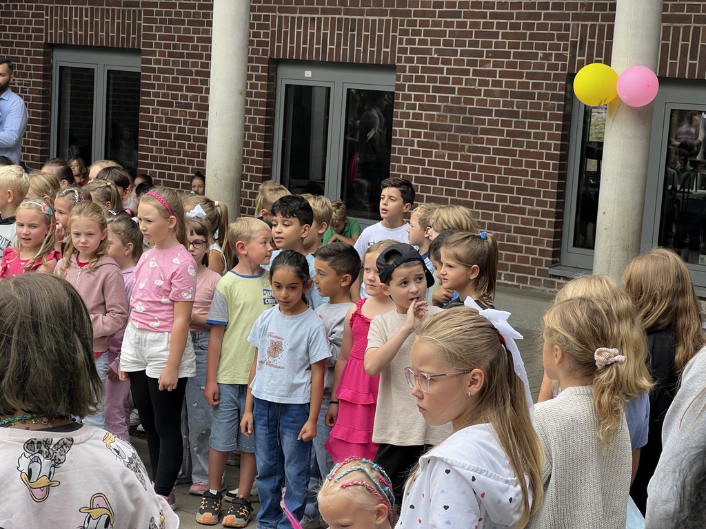 Am letzten Schultag dieses Schuljahres herrschte auf unserem Schulhof eine ganz besondere Atmosphäre. Gesichter der Kinder, Eltern und des Teams strahlten um die Wette, als sich die gesamte Schulgemeinschaft versammelte, um das Schuljahr mit einer fröhlichen Feier zu verabschieden.
