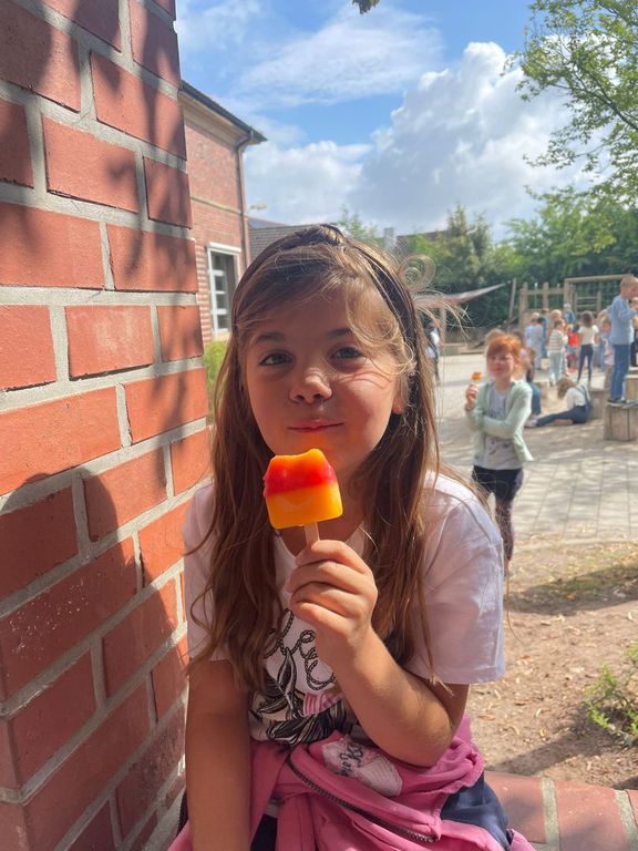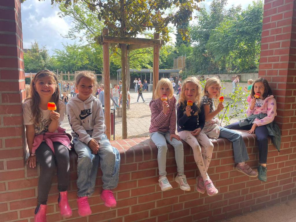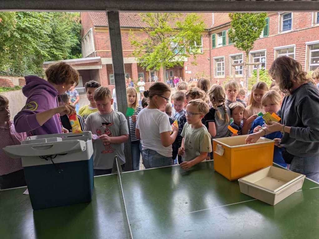 Auch in diesem Jahr setzte der Förderverein der Mosaikschule in Ostenfelde seine liebgewonnene Tradition fort: In der Woche vor den Sommerferien durften sich alle Schülerinnen und Schüler auf eine erfrischende Überraschung freuen. Für jedes Kind gab es ein leckeres Eis!