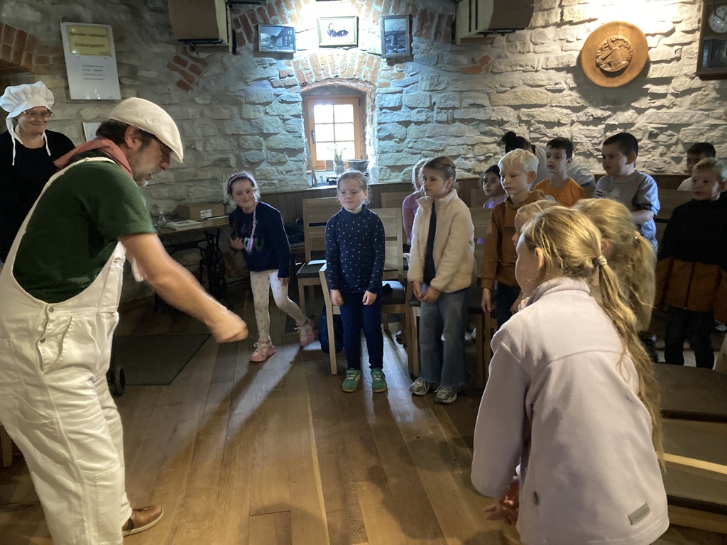 Die Windmühle, ein historisches Gebäude neben unserem Schulgelände, bot den perfekten Rahmen für die Märchentage. Die rustikale Atmosphäre und die gemütliche Einrichtung schufen eine stimmungsvolle Kulisse, die die Magie der Märchen noch verstärkte. Die Kinder konnten sich in dieser besonderen Umgebung ganz in die Geschichten vertiefen und die Welt der Märchen hautnah erleben.