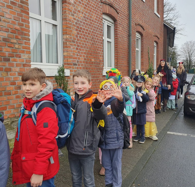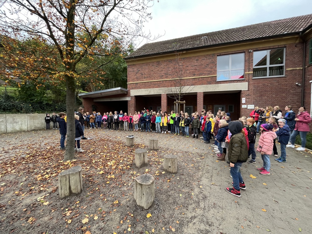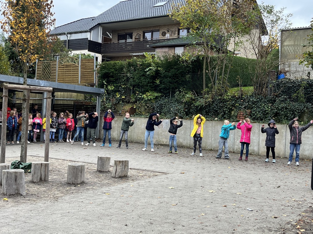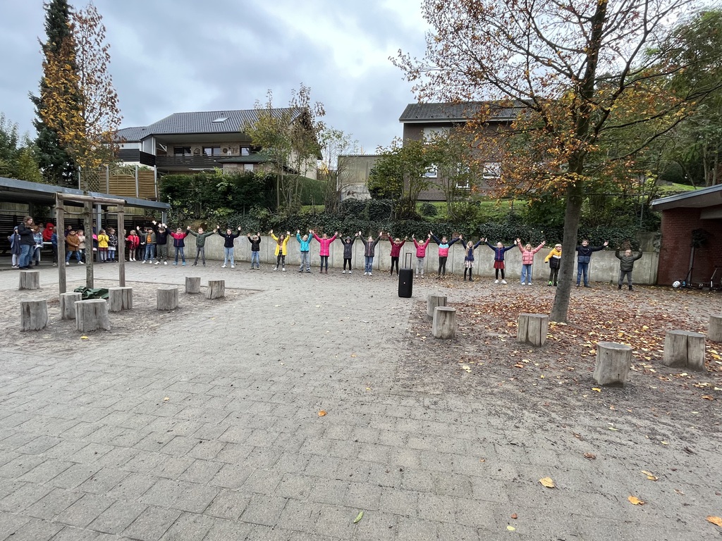 Der Schulhof wurde umfassend entsiegelt und neu gestaltet im Rahmen des Projektes "Coole Schulhöfe für NRW" auf dem Weg zu einem naturnahen und klimaresilienten Gelände. Die Arbeiten wurden im Dezember abgeschlossen. Bis dahin mussten die Kinder und Lehrkräfte Einschränkungen in Kauf nehmen: Während der Umbaumaßnahmen mussten die Kinder die Schule durch den Seiteneingang betreten. Auch die Spielfläche wurde kurzfristig auf die Kirchwiese und den Parkplatz verlagert - natürlich mit entsprechenden Sicherheitsvorkehrungen.
