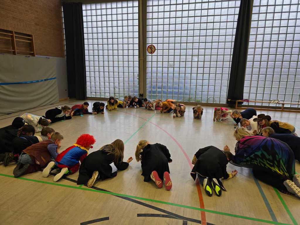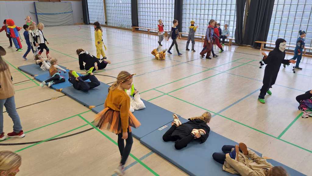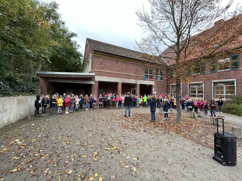 Vor natürlicher Herbstkulisse sangen die Schüler und Schülerinnen "Hejo, spann den Wagen an" und den Kartoffel-Rap. Die Tanz-AG führte zudem ihren Tanz "Makeba" auf.