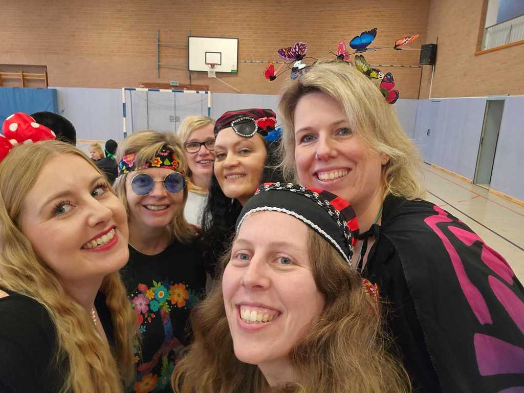 gestaltet. In der letzten Ferienwoche griff das Lehrerteam in Ostenfelde bei bester Laune zu Leitern, Projektor, Wasserwaage, Pinseln und Farben und legte gemeinsam los.