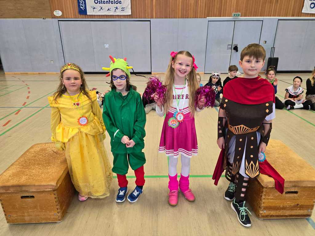 Am Dienstag, 14. Juni 2022, wurden schließlich die Teilnehmer der Mosaikschule am Schulstandort in Ostenfelde von der Schulgemeinschaft geehrt. Wie in jedem Jahr konnten alle Teilnehmer des Känguru-Wettbewerbs neben einer Urkunde mit der erreichten Punktzahl, einer Broschüre mit den Aufgaben, Lösungen und weiteren Knobeleien auch ein kleines Knobelspiel als „Preis für alle“ entgegennehmen. Über einen sogenannten „ersten Preis“ bei einer hohen Punktzahl konnte sich Viertklässler Robin freuen.
